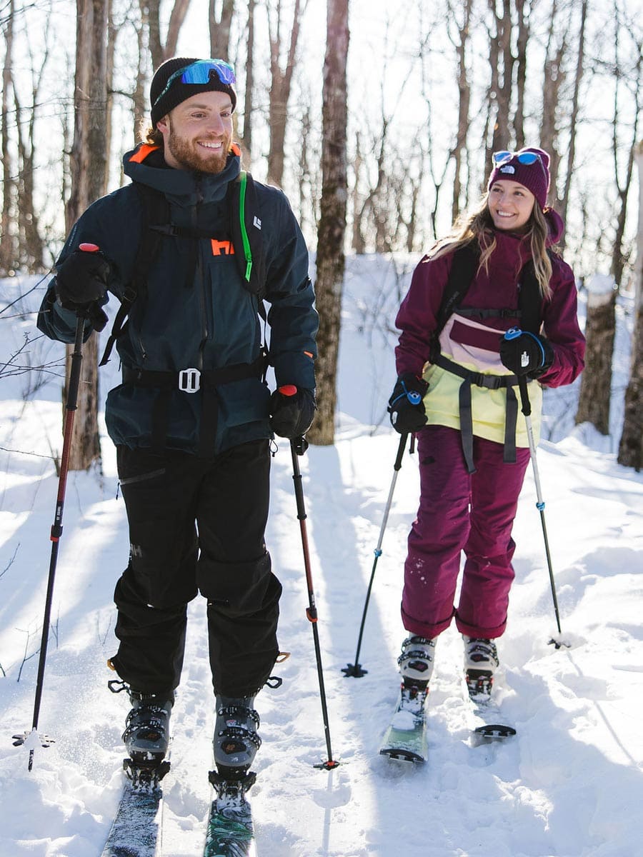 Take an exploratory tour of alpine touring boots. Different from conventional alpine ski boots, they’re lighter and come equipped with technologies that enable you to walk comfortably on the mountain. In fact, alpine touring ski boots have a collar that you can unfasten to give you a greater range of moption when you walk.